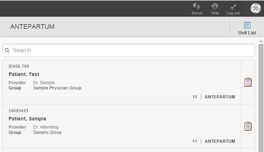 Centricity Perinatal Web will remember your selected unit for your device. When you return to the Patient Directory from the Patient Details view, the patient list will be refreshed. If you do not have privileges to the last unit selected on that device you will be prompted to select a unit.